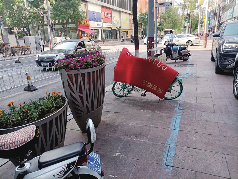 在柳巷南路上,沿街商铺的工作人员,竟然把共享单车当成了“晾衣架”,将店铺的一张脚垫搭在共享单车上晾晒。见此情景,有打算骑行的市民皱眉摇头。一辆辆布设在街头巷尾的共享单车,给居民的绿色出行增添了便利,但个别人的行为既不文明也很“煞风景”,希望每一个人养成爱护公共设施的好习惯。