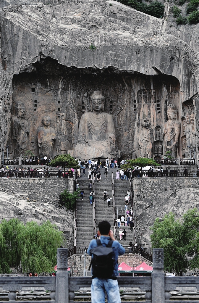 眼下,河南洛阳龙门石窟景区正值旅游旺季,精美的石刻佛像吸引众多游客参观。龙门石窟位于洛阳市南郊,开凿于北魏孝文帝迁都洛阳时期,迄今有1500多年历史,2000年龙门石窟被列入《世界遗产名录》。