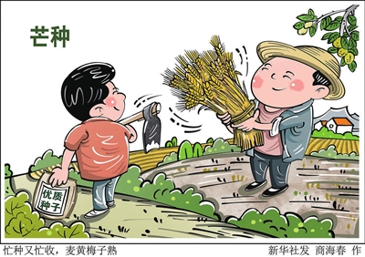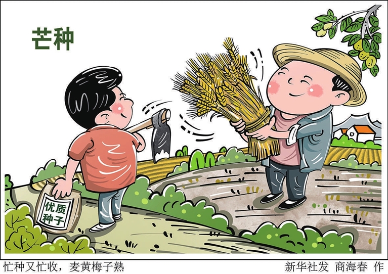 《月令七十二候集解》中说:“五月节,谓有芒之种谷可稼种矣。”民谚云:“芒种芒种,忙收忙种。”作为我国重要的农耕节令,芒种谐音“忙种”,伴随“三夏”大忙高潮到来,人们在耕作与收获的变奏中书写美好年光——