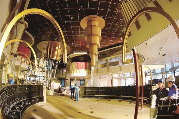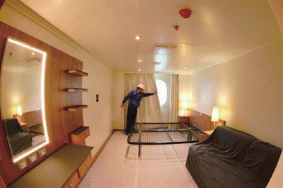 长323.6米,宽37.2米,总吨13.55万吨,首艘国产大型邮轮给人的第一印象就是“大”。除了体量大,它区别于其他大型船舶的突出特点还有功能“全”。24层楼高,拥有2826间舱室,可容纳6500多人,船上豪华酒店、影院剧场、水上乐园一应俱全,如同一座“移动的海上城市”。