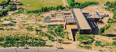 博物馆设计上,采取消隐的手法将建筑体量化整为零,形似一个个考古“探坑”,又像一个个相互关联、半掩入地下的“沙漠宝盒”。
