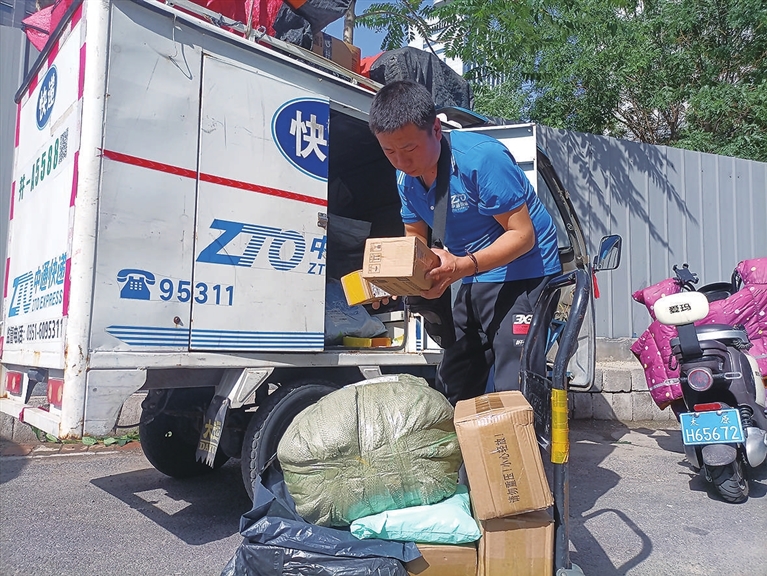 “您的快递到了,在家吗?”一个接一个地打去电话、扫描签收,车厢里的包裹渐渐减少。一车送完,已是午时。但显然,当天的任务还没有完成,他要返回网点,再装满一车。