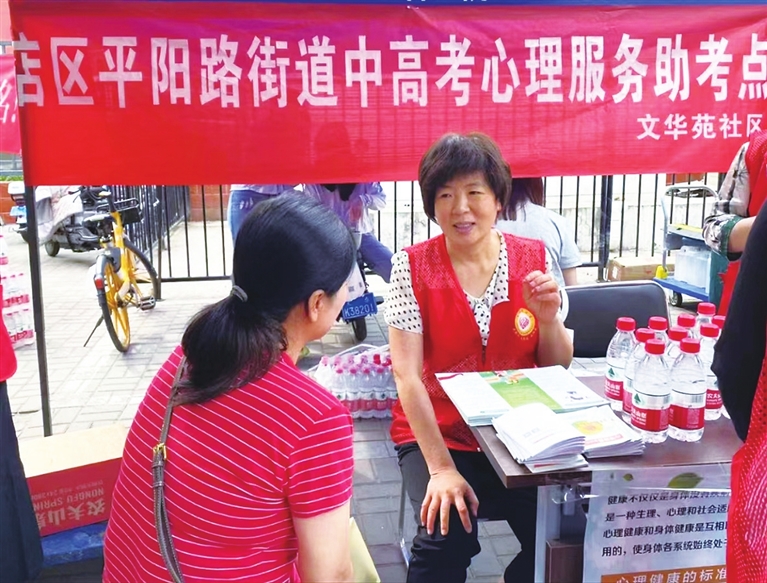 一大早,文华苑社区的工作人员便来到太原市第四十八中学校高考考点门口,协助交警进行文明劝导、秩序维护,提醒送考的家长不要大声喧哗,为考生们安心高考营造一个安静而有秩序的外围环境。同时,现场设置了社区志愿服务站点和心理服务助考点,为考生和家长们免费提供矿泉水、口罩、风油精等物品,并和守候在外的家长们交流沟通,帮助他们排解、舒缓心理压力和紧张情绪。社区工作人员忙碌的身影汇成一道亮丽的风景线,一抹鲜亮的志愿红,以细致、热情、周到的优质服务表达了对莘莘学子的美好祝愿。