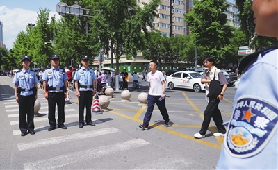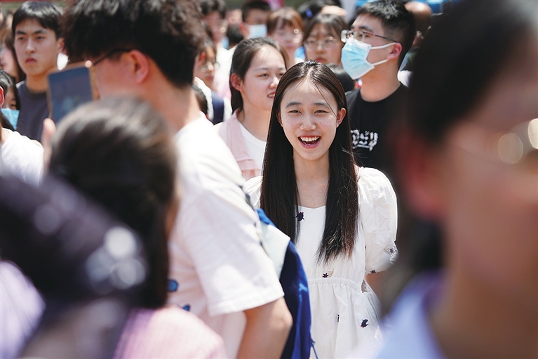 “放轻松,加油!”人群中,五十三中送考教师赵霞的声音带着笑意,非常有感染力。围着她的几名男生女生们表情镇定,但也略显紧张。“你们怎么过来的?”“早晨吃的什么?”……看得出来,赵霞尽量在谈论一些轻松的话题,让学生们可以放轻松。渐渐地,学生们有说有笑,“从小考到大,不怕这一下。”“把手机留下,我在这里等你们。”赵霞将学生们的手机收起来,然后用期许的目光一直追随着他们的背影。