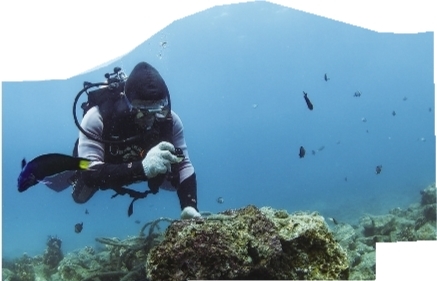 海南省三亚蜈支洲岛海域海洋牧场是海南首个国家级海洋牧场示范区,蜈支洲岛旅游区海洋部经理王丰国作为海洋牧场建设的一线作业人员,致力于海域生态环境的修复和保护。他与海为伴,完成人工鱼礁、船礁投放,珊瑚移植,协助科研机构调研等工作。“我们也是水下清道夫”,清理海洋垃圾和珊瑚敌害,也是王丰国的日常工作。