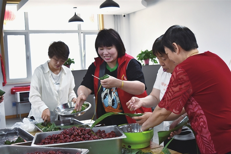 “王大妈,您这粽叶裹得真紧实。”“小刘,你包得棱角分明,好看。”在玉园南社区组织的迎端午活动中,居民们一起动手包粽子、煮粽子,每个人的脸上都洋溢着笑容。6月13日万柏林区消息,端午节将至,不少社区都举办了端午主题活动,邻里街坊欢聚一堂,包粽子、做香囊、话端午、传粽情。热闹的端午节已经化身为幸福的“邻里节”,助力居民之间从“陌邻”到“熟邻”和“睦邻”。 李涛 尚悦 摄