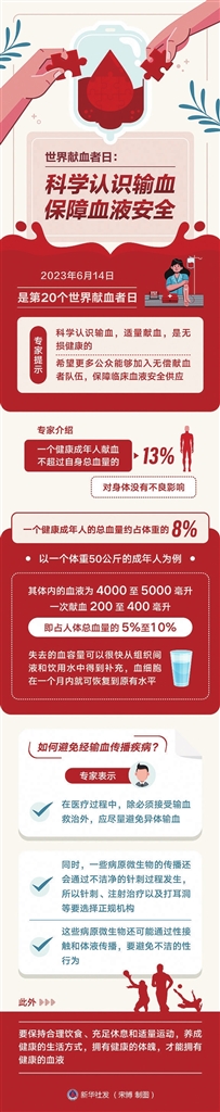 根据世界卫生组织活动口号,结合我国无偿献血发展情况,2023年我国世界献血者日的活动口号是:捐献血液,分享生命。活动主题是:汇聚青春正能量,无偿献血传爱心。国家卫生健康委医疗应急司有关负责人表示,世界献血者日旨在颂扬无偿献血者通过献血拯救他人生命、改善他人健康的奉献行为,也呼吁更多人特别是青年人能够定期参加无偿献血。