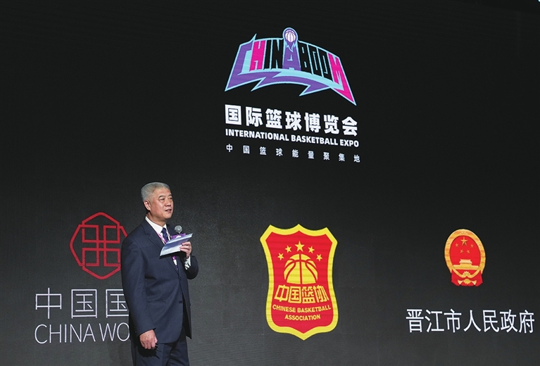 6月13日,中国篮球协会副主席徐济成在发布会上介绍情况。当日,2023年国际篮球博览会新闻发布会在北京举行。本届博览会将于11月在福建晋江举办。 新华社 发