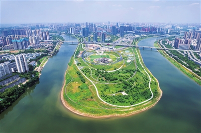 这是6月7日在长沙市开福区拍摄的马栏山鸭嘴湿地公园(无人机照片)。