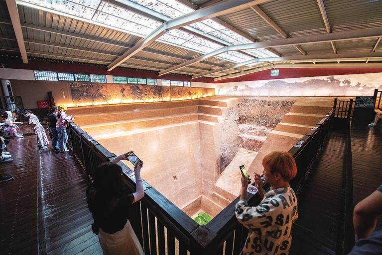 6月9日,游客在参观位于长沙市开福区的马王堆汉墓墓坑遗址。