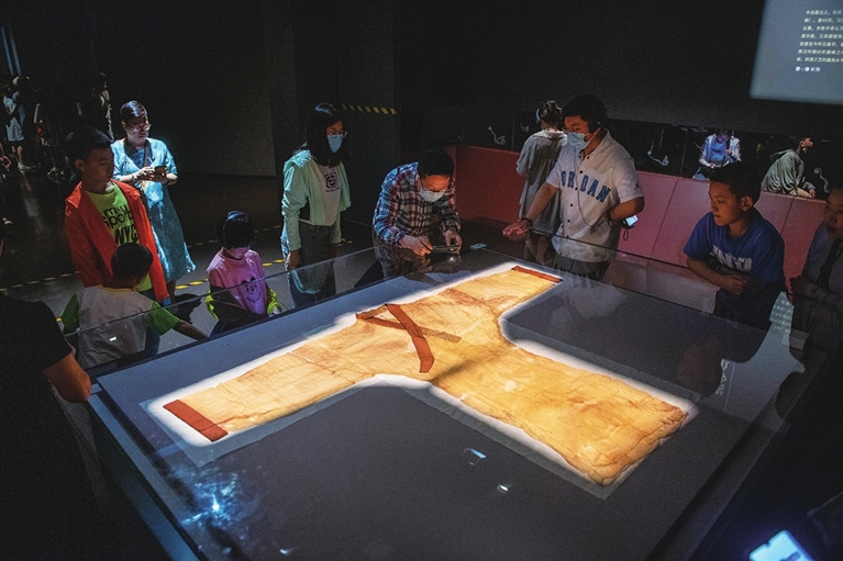 6月7日,在湖南博物院,游客们在参观长沙马王堆汉墓出土文物。