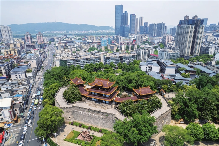 这是6月11日在长沙市天心区拍摄的天心阁(无人机照片)。