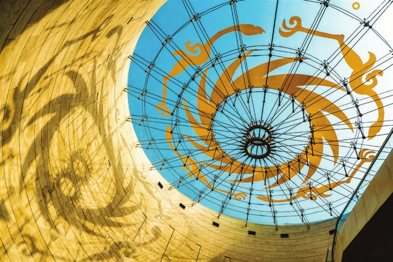 阳光透过成都金沙遗址博物馆陈列馆穹顶。