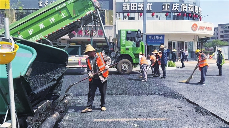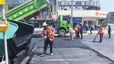 6月16日,市政工人在兴华街开始大面积铺油。此次铺油为路面的最后一层,总面积为10万平方米,整个工作将持续三四天。