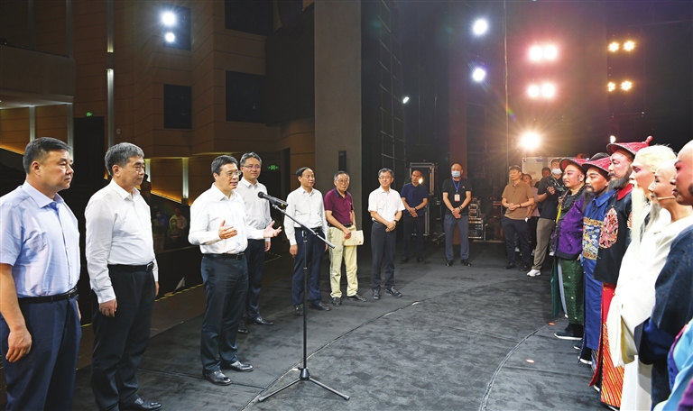 演出结束后,韦韬、张新伟等走上舞台与演职人员亲切握手,祝贺演出取得圆满成功。韦韬强调,习近平总书记六年四次到我省考察调研,两次对挖掘弘扬于成龙廉政文化提出明确要求。新编晋剧《于成龙》是贯彻落实习近平总书记考察调研山西重要讲话重要指示精神的实际行动和重要成果,不仅是一台思想精深、技艺精湛、制作精良的大戏好戏,也是一堂别开生面的“沉浸式”廉政教育课。全市广大党员干部特别是领导干部要深入学习贯彻党的二十大精神,全面落实习近平总书记考察调研山西重要讲话重要指示精神和在文化传承发展座谈会上的重要讲话精神,准确把握“两个结合”的深刻内涵,坚定理想信念,增强文化自信,从中华优秀传统文化中汲取精神养分、传承廉政文化、涵养清风正气,廉洁奉公、勤政为民、勇于担当,以实际行动推进清廉太原建设走深走实,为我市高质量发展作出更大贡献。广大文艺工作者要把牢正确方向、坚守人民立场,充分挖掘我市丰厚的文化资源,推出更多文艺精品力作,传承弘扬优秀传统文化,讲好太原故事,展示太原形象,不断丰富人民群众的文化生活。各级党委政府要更加重视支持文艺事业发展,推动解决文艺院团和工作者的实际困难,为出作品、出人才、出影响、出品牌做好服务保障。