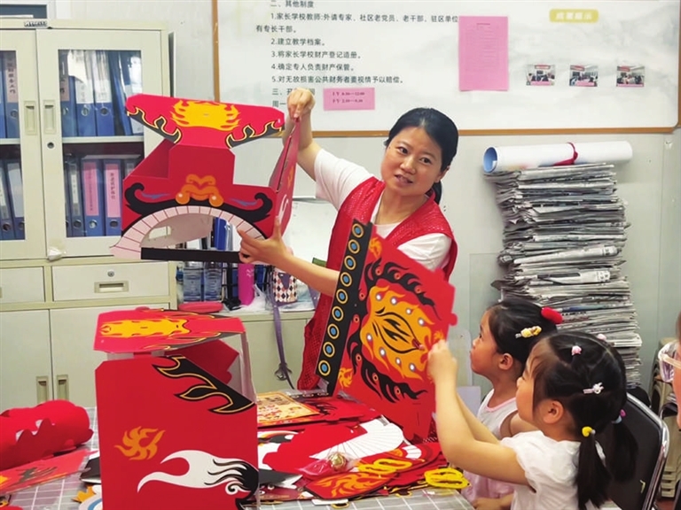 为让辖区儿童感受传统文化魅力,营造端午节欢快和谐氛围,6月20日,校尉营社区组织辖区儿童,开展手工制作醒狮活动。贴上眼睛、摆好耳朵、挂上铃铛……孩子们在志愿者老师的指导下,很快将一个个图案精美、五官立体的醒狮头套制作出来。孩子们把它戴在头上,模仿着舞狮者的神态和动作,欢声笑语充满整个活动现场。
