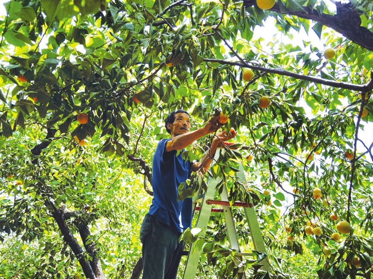 刘永昌的果园曾经闲置多年,他一直在外打工。十几年前,村里开展果园种植,他回到村里,开始种杏。多年来,他已经积累了丰富的种植经验。今年受到春天降温影响,产量稍有受损,估摸着能产出近5000公斤杏儿,但果实的品质不减。这几天“凯特”杏“唱主角”,过几天,酸甜可口的“梅杏”成熟,又别具一番风味。