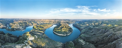 夏日时节,蒙晋陕黄河大峡谷在落日余晖的映照下壮美如画。