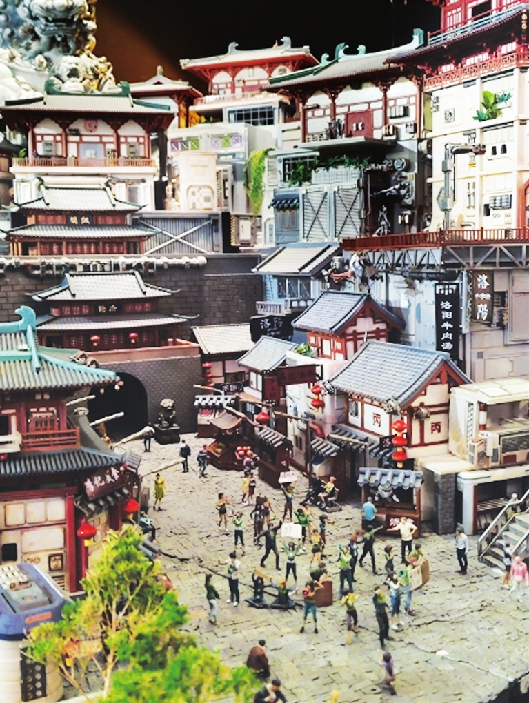 中央美术学院毕业展中,最为让人震惊的作品是一个融合了赛博朋克的古代建筑模型《东都秘录》,其作者是设计学院的赵裕龙,这件作品细致精微、看起来像是由团队完成的。加之唐代建筑与现代科技相结合,并以植物发电的背景为世界观。整件作品展现主角狄秋的探案故事,观众也感受到传统文化的魅力。