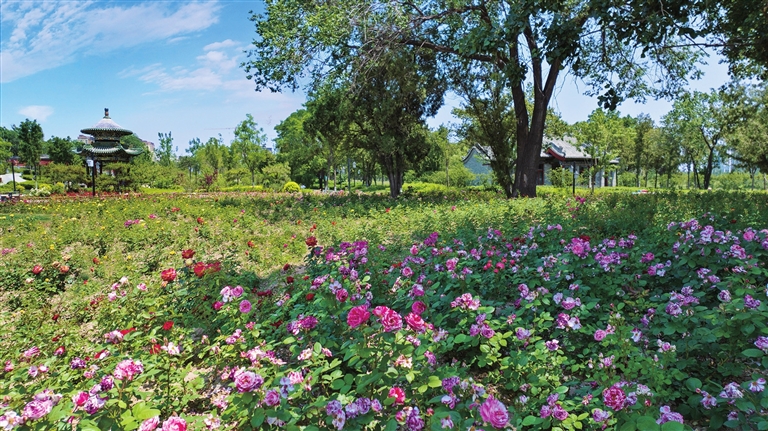 6月21日,农历夏至。双塔公园万余株月季以娇艳的花容静静地迎接仲夏和游客的到来。 记者 宿晓健 摄