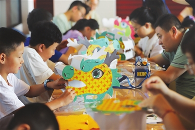 6月23日,太原市博物馆开展端午节系列活动。孩子们在老师的带领下,了解端午来历,一起绘制龙头,感受传统文化魅力。 张昊宇 侯艳芳 摄