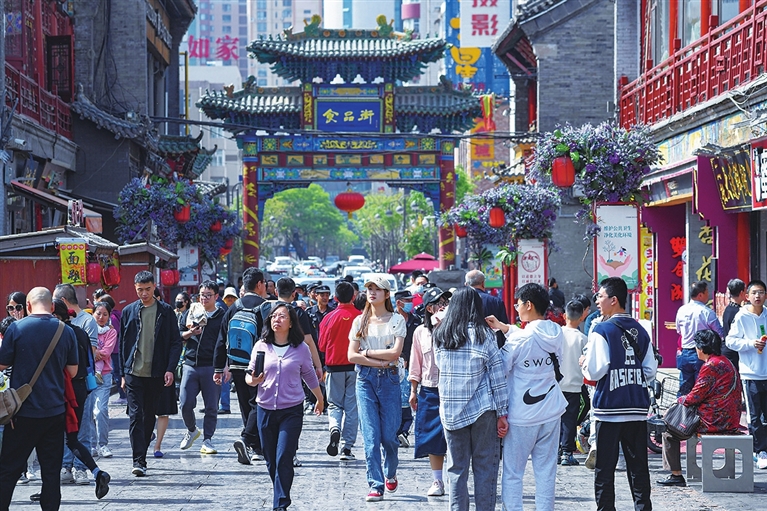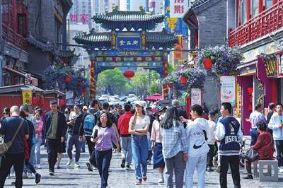 组织游客前往晋商博物院、钟楼街、食品街一带活动,已是外地游客深度体验锦绣太原的热门线路。在这里,游客免费参观晋商博物院,了解历史文化知识,行走数百米,可在食品街品尝各类美食,体验人间烟火,行走几十米,来到国家级旅游休闲街区钟楼街,感受古老与时尚的碰撞。在钟楼街一带,人山人海、人声鼎沸的场景,见证了太原市作为知名旅游目的地的高人气。