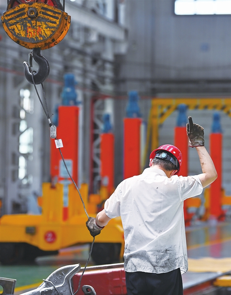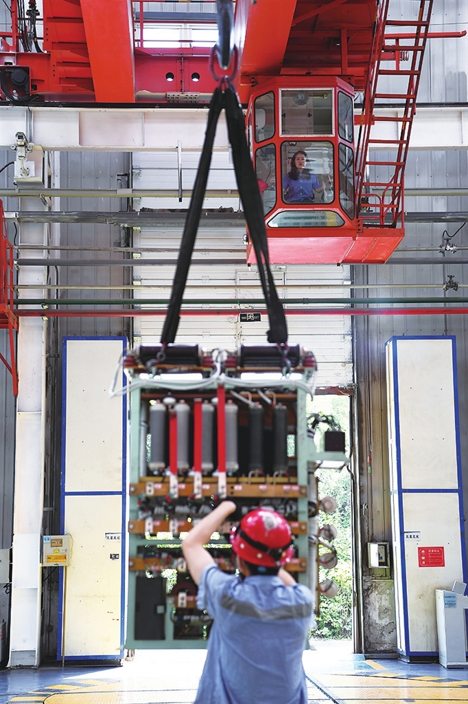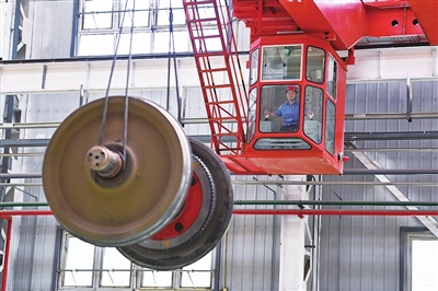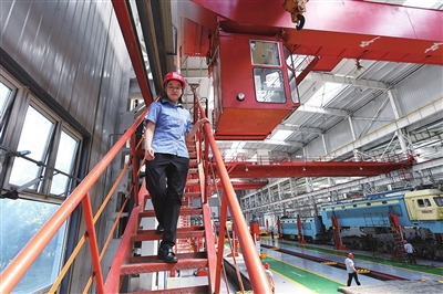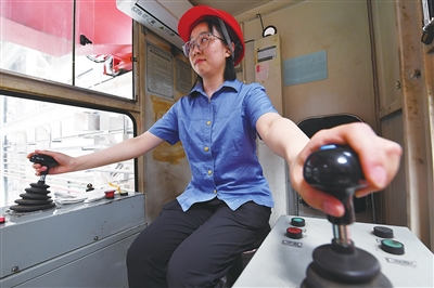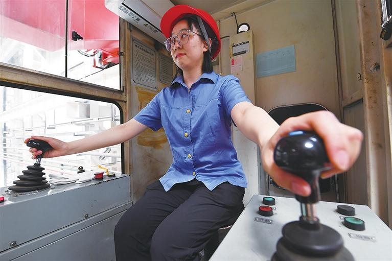 启动车辆、控制操纵杆、调整挂钩位置、吊起部件、脚下踩着警示铃……王孟媛对驾驶天车在高空轨道上来回移动的每个操作步骤都烂熟于心。“我们工作的特点需要胆大心细,除了要克服恐高心理,还要与地面人员互相配合,全神贯注才能保证将一个又一个配件安全精准地运送到既定位置。”