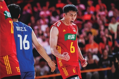 中国队在第二局状态有所提升,进攻多点开花,德国队失误较多,俞元泰在局末阶段发球直接得分,帮助球队以25:18扳回一局。第三局,中国队始终保持比分领先,一传稳定性较好,也多次依靠反击进攻得分,以25:19再胜一局。
