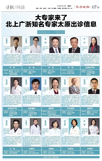 大专家来了 北上广浙知名专家太原出诊信息