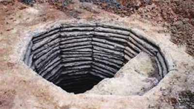 水井的井口距地表的距离约16米,井底距地表深约25米。水井分为井口、井圈、井底三部分,井口平面略呈圆形,口、底相若,直壁,平底,底部凹凸不平。口径近5米,底径5米,残深9米。井圈用支护木层叠垒砌而成,井圈与井壁之间紧密贴合,井圈平面呈九边形,自上而下尚存38层,每一层皆用9根支护木榫卯相互衔接而成为闭合一周的井圈。每根支护木中部外侧相对应的井壁上,都掏挖有一个半圆形或半椭圆形的壁坑,井圈口径4.5米,底径4.5米。支护木多为柏木,基本保持木头原状。支护木由柱体、榫、卯组成。井底为含卵石的砂层。