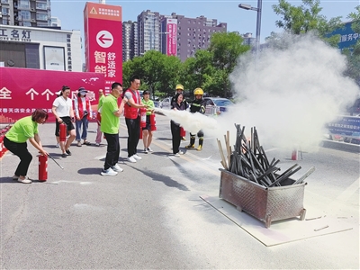 6月27日上午,前机社区在辖区消防部门配合下,在驻地单位和企业开展消防演练活动,增强大家的消防安全意识,进一步掌握快速灭火的方法,筑牢安全防线,共建和谐家园。 韩睿 刘静怡 摄