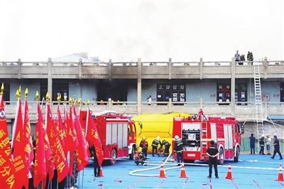 演练现场,大火浓烟几百米外清晰可见,这一险情画面迅速通过高空“鹰眼”传到综合指挥大厅,一场多方联动处置的实战演练拉开序幕。封控组、巡逻组、搜救组、内攻组、疏散救人组、侦查组、破拆组、医疗救护组等在县应急救援总指挥部指挥下进行演练,为进一步提升突发事件应急处置能力奠定了基础。