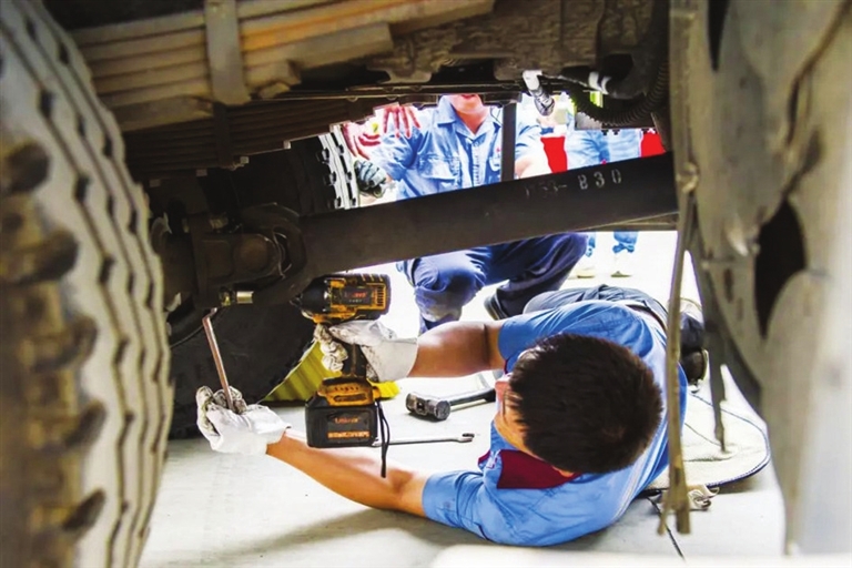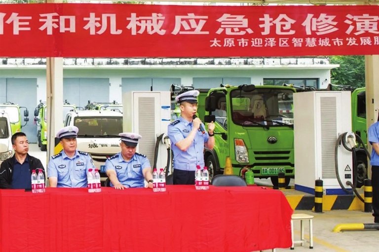 重型环卫车辆是环卫队日常工作中不可或缺的重要工具,但因车辆体积庞大,在起步或转弯时存在视野盲区。“减速,停车观察,慢慢转弯,一定要慢!”模拟演练中,车辆安全指挥员通过话筒,指导驾驶员安全行车。演练还模拟了环卫车辆在工作中突发故障的情形。驾驶员发现车辆发出异响,迅速停靠在不影响交通安全的区域,打开双闪,并在合适的位置放置三脚架,随即上报抢修。整个演练过程流畅迅速,进一步提升了车辆应急抢修能力,规范了环卫车辆安全操作。