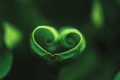 6月24日,在河南省洛阳市隋唐城遗址植物园南门景观水系拍摄的“心”形荷叶。