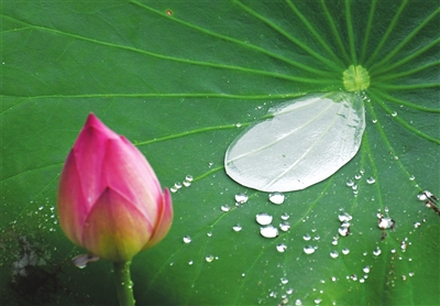 6月25日在山东省枣庄市山亭区月亮湾国家湿地公园拍摄的雨中的荷花。
