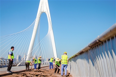 近日,有市民反映,摄乐桥非机动车道的塑胶铺装层出现破损,造成桥面钢结构锈蚀,影响市民出行及桥梁美观。市市政公共设施建设管理中心桥梁养护所已关注到这一问题,并研究制定了维修方案。随着近期养护计划的下达,6月30日,市政工人将破损、老化的塑料铺装层予以铲除,摄乐桥非机动车道铺装层升级改造正式启动。