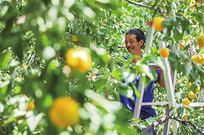 6月30日,姚村镇黄楼村杏子挂满枝头,村民喜获丰收。该村将特色种植与观光旅游相结合,带动农民增收致富。 王韵菲 摄