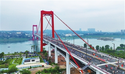 当日,四川泸州长江二桥建成通车。该桥长1016米、主跨576米,是泸州首座双层公轨两用悬索桥。