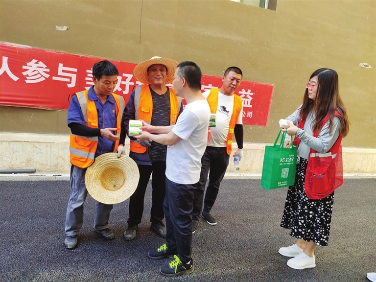 连日高温,施工人员在烈日炎炎下坚守一线非常辛苦。7月2日,兴华街道建机巷社区干部、网格员联合卫生服务站医护人员,为辖区工地施工人员送上消暑药品和保健品,获得大家好评。 韩睿 何艳兵 摄