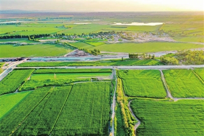 近日,新疆昌吉回族自治州呼图壁县园户村镇下三工村,夕阳映照下,连片的鱼塘与四周整齐的田地相映成趣,构成一幅独特的乡村田园生态画卷。近年来,昌吉州按照“一镇一特色、一村一品牌”的发展思路,大力发展乡村旅游,集中打造集“采摘、垂钓、休闲观光”于一体的乡村休闲旅游综合体,提升游客旅游体验。