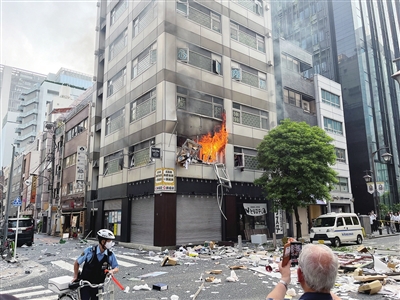 这是7月3日在日本东京都港区新桥车站附近拍摄的爆炸现场(手机拍摄)。 新华社 发