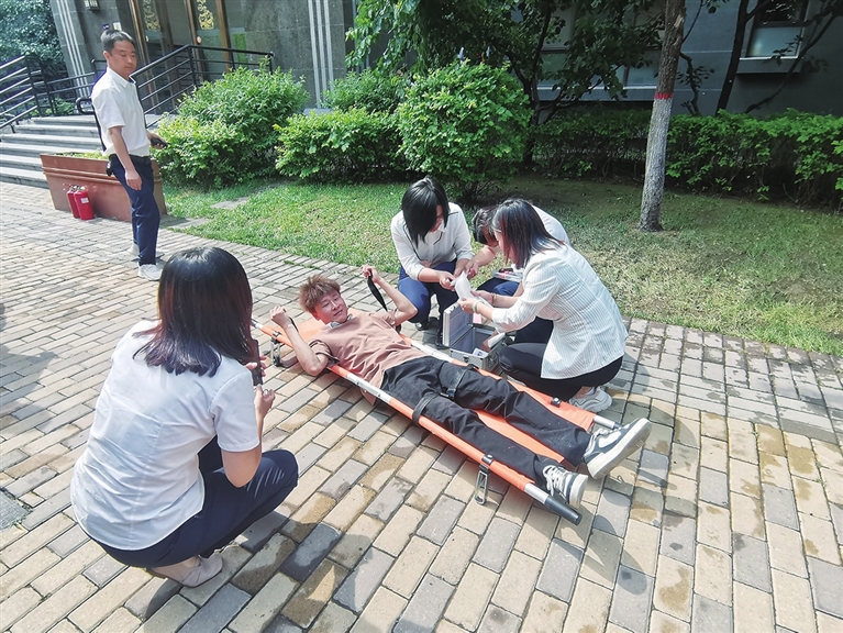 现场,随着消防警报拉响,所有人员按照分组分工各就各位。疏散组指引“居民”用湿毛巾捂住口鼻,低下身子,迅速有序撤离到安全避险场所;警戒组拉起警戒线,维持秩序;灭火组连接水带水枪,开水灭火;抢救组用担架抬出伤员,进行基础医疗处理后转移……演习现场模拟火情,进行了信息通讯、火灾报警、应急疏散、火场扑救、应急救护、后勤保障等环节。演习结束后,工作人员给居民讲解了用火安全注意事项,及各类消防器材操作使用,并让大家进行了灭火器的实操。