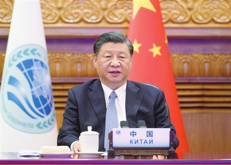 习近平指出,当前,中国人民正在中国共产党领导下推进中国式现代化建设。我们愿以中国式现代化新成就,为包括上海合作组织国家在内的世界各国提供新的发展机遇,推动建设更加美好的世界。