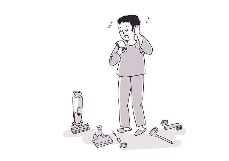 刘女士购置了一台智能洗地机。巨大的包装箱内有一个结构“精密”的包装盒,凹凸不平的盒体嵌着各种零件。对于这些零件的用途,说明书上并没有详细说明。