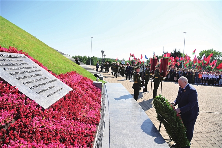白俄罗斯总统卢卡申科当日在明斯克郊外的光荣岗纪念碑前敬献花圈并发表讲话。他说,白俄罗斯纪念并缅怀苏联人民在卫国战争期间的壮举,白俄罗斯不允许忘记历史和新纳粹的出现。参加活动人士在纪念碑前集体默哀一分钟。