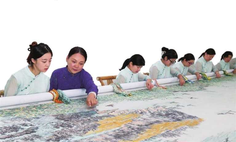 绣制过程中,面对100多人的团队、针法的统一走向及颜色浓淡把握是非常困难。