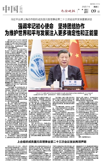 上合组织成员国元首理事会第二十三次会议发表两项声明