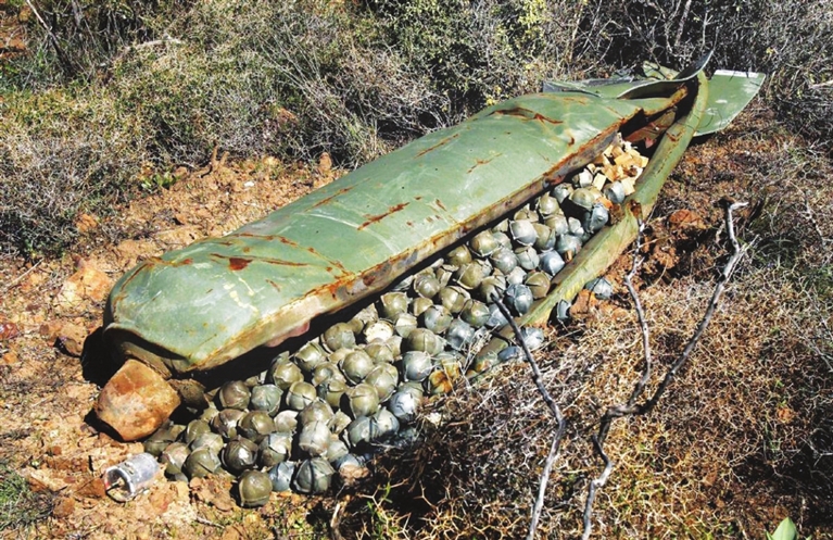 所谓集束弹药,是将数量达十余枚甚至数百枚的小型弹药集合在一起制成的机载炸弹或火炮炮弹等,投放后会在空中大范围释放小炸弹,在接触地面时或之后引爆。但这些小炸弹也可能无法正常引爆,变成哑弹,从而对散落地点附近平民构成长期威胁。