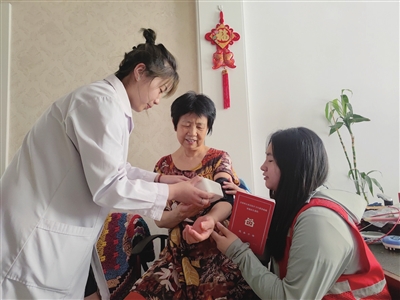 “阿姨你的血压、血糖都正常,这几天挺热,一定要减少外出。”对于老年人来说,高温天气容易诱发心脑血管疾病。7月8日万柏林区消息,考虑到老人在高温天的身体健康问题,光华街社区联合光华街卫生服务站,为独居、空巢老人提供送医上门服务,测血压、测血糖,并对有基础病的老人进行用药和健康指导。 李涛 郭文娟 摄