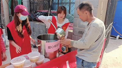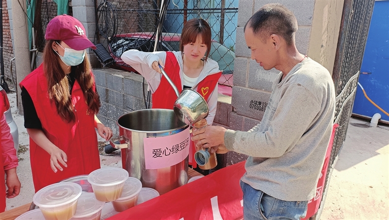 针对持续高温天气,7月7日和8日,兴华街道新悦社区组织开展“高温慰问到工地,情系工人送清凉”活动,社区工作人员将冰镇的绿豆汤分装,去往辖区老旧小区改造一线,为施工人员送去清凉,并叮嘱他们注意休息和防暑,使他们感受到社区浓浓的关爱。 申波 郭奕萱 摄